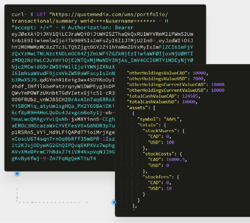 QuoteMedia's API allows you to easily manage and create end user accounts for access to real-time data. The API also provides you the ability to edit, delete and create portfolio entries. This is ideal for financial platforms needing to integrate user creation and portfolio management. Read More