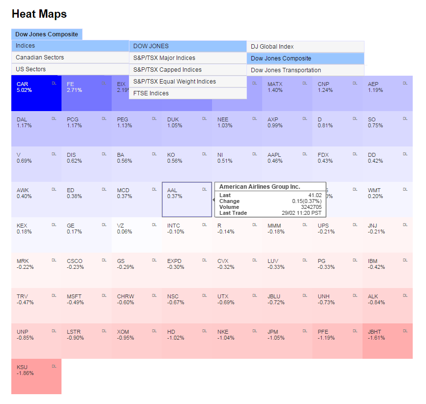 You can also show the performance of individual securities in different Sectors are performing, or even a heat map of the stocks in your users' own portfolios. This attractive tool allows you and your users to effectively organize a large amount of information in a simple and useful display.
